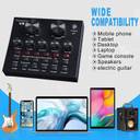 MULTI-DEVICE SUPPORT: 7 kinds of connection methods: live via one mobile phone, live broadcast via two mobile phones, live broadcast via 3 mobile phones, synchronous live broadcast via mobile and computer, live broadcast via one computer, computer accompaniment mobile phone live, instrument input mobile phone live.Reverb, treble, bass, recording, music, monitor, mic adjustmentThe sound card V8 voice changer provides these knobs, you can adjust and use these functions according to your preferences