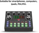| Other Features | - The Sound mixer voice changer is compatible with iPhone, Android mobile phone, type c phone, PC, Computer, iPad, Tablet, gaming devices and electronic musical instrument., This updated sound card is equipped with Bluetooth function, very easy to connect to your mobile phones, just plug earphones in sound card and open your music software in cellphone, choose one you like mode, enjoy your music time.