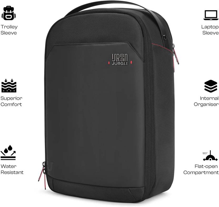 Dive into a world of style and functionality for the modern traveller with Urban Jungle's latest masterpiece, the Downtown Workpack. This versatile backpack is crafted from premium polyester fabric, ensuring durability, water resistance, and ease of maintenance - simple wipe with a damp cloth keeps it looking fresh. Its revolutionary 180-degree flat-open main compartment and its many pockets and organizers, make packing and accessing your essentials a breeze. The dedicated padded laptop compartment offers unrivalled protection and easy access to even a 16" laptop. With superior padding on both the sleeve and the back, it promises a burden-free journey, whether you're navigating city streets or cruising through airports. The intuitive trolley sleeve turns it into the perfect travel partner, allowing you to attach the backpack to your luggage for hands-free movement. Combined with a 12-month international warranty, Urban Jungle's Downtown Workpack promises quality and stress-free adventures.