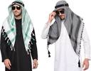 Typically made from lightweight cotton or a cotton-blend, providing breathability and comfort in the arid climate of Saudi Arabia., Characterized by a square shape and a distinctive checkered pattern, reflecting both cultural heritage and practicality in the desert environment.