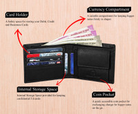 There are eight card slots provided in the wallet that can be used for stacking different kinds of cards. Whether credit cards, ID cards, driving licenses, or ATM cards, the slots in the wallet are useful for variable storage. Moreover, there is a coin pocket also added in the card design in which coins may be stored. A provision for stacking a photo ID is provided in a transparent slot, too.