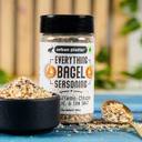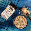 white Sesame Seed (27.6%), Garlic Granules, White onion Flakes, Poppy Seeds, Black Sesame Seeds, Pink Salt.