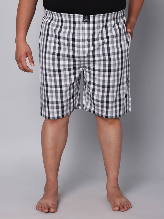 Upgrade your underwear collection with the Urban Scottish Men's Plus Size Boxers. These stylish and comfortable boxers are designed with the perfect blend of fashion and functionality. Made with premium quality 100% cotton fabric, they offer exceptional comfort and breathability, making them ideal for everyday wear. The regular fit and mid-rise design ensure a flattering look for all body types, while the grey checkered pattern adds a trendy touch to your outfit. The two Side Pockets design allows you to conveniently store your essentials. Suitable for casual occasions, these boxers are perfect for relaxing at home or running errands. Invest in the Urban Scottish Men's Plus Size Boxers and experience unmatched comfort and style.