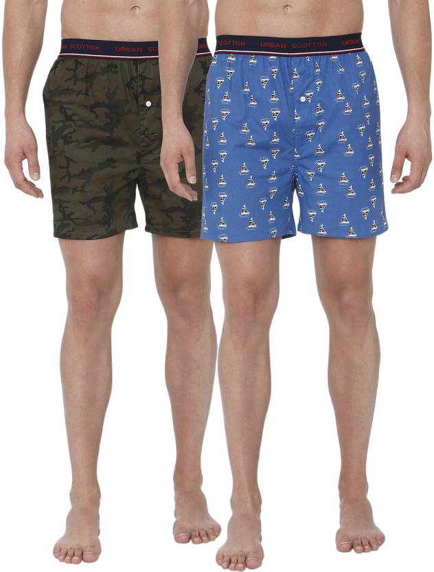 Feel comfortable with these boxers from the house of Urban Scottish. The premium fabric will give you fashionable look and make you feel comfortable. Pack of two printed boxers in blue and brown, each has an inner elasticated waistband, slip-on closure.