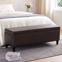 Urban Signature Storage Ottoman Premium Polyester Fabric: Upholstered in 100% polyester, this storage ottoman combines durability with a soft, inviting feel, perfect for any contemporary home. Contemporary Design: Featuring classic tufted waffle stitching and stunning nailhead trim, this ottoman exudes contemporary elegance. The minimalistic yet refined structure highlights a simplistic style that emphasizes both comfort and functionality. Tufted Waffle Stitch: The lid's tufted stitching offers an extra touch of sophistication, enhancing the ottoman's modern design. The waffle stitch pattern adds texture without sacrificing comfort. Nailhead Accents: The ottoman features tasteful nailhead accents bordering the bottom, each individually applied for a beautiful, handmade touch, adding to the piece's overall elegance. Ample Storage Space: Designed with generous storage capacity, this ottoman is perfect for storing pillows, blankets, and other essentials. The pressure hinges ensure the lid stays open on its own and closes softly. Perfect Dimensions: Measuring 50.85 inches wide, 19.65 inches deep, and 15.75 inches high, this ottoman is the perfect size to complement your furniture and enhance your living space. Versatile Use: Whether placed in the bedroom, living room, or entryway, this storage ottoman offers a stylish and functional addition to any home.