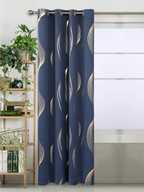 Urban Space 244 cm (8 ft) Long Door Polyester Blackout Curtain Single Curtain (Wave Navy Blue, Geometric)