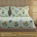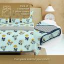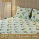 Urban Space Cotton Queen Sized Bedding Set (Light Blue, Yellow, 1 Bedsheet, 2 Pillow covers, 1 Blanket)