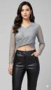 Upgrade your party wardrobe with this stunning women’s sequin mesh crop top, designed to make you shine at every occasion. Featuring a chic V-neckline, sheer long sleeves, and a trendy twisted front detail, this stylish top is perfect for party nights, clubwear, festive events, and evening outings. The lightweight mesh fabric with shimmering sequin accents adds a glamorous touch, while the crop length gives it a modern and fashionable appeal. Pair it effortlessly with skirts, jeans, or trousers for a statement-making look. A must-have trendy top for women who love elegant yet bold fashion.
