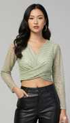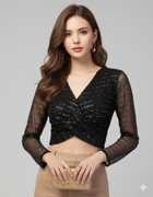 Upgrade your party wardrobe with this stunning women’s sequin mesh crop top, designed to make you shine at every occasion. Featuring a chic V-neckline, sheer long sleeves, and a trendy twisted front detail, this stylish top is perfect for party nights, clubwear, festive events, and evening outings. The lightweight mesh fabric with shimmering sequin accents adds a glamorous touch, while the crop length gives it a modern and fashionable appeal. Pair it effortlessly with skirts, jeans, or trousers for a statement-making look. A must-have trendy top for women who love elegant yet bold fashion.