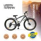 Urban Terrain UT1000S26 Steel 26T MTB Cycles Shimano Geared for Men with Dual Disc Brake 29 T (inch) Road Cycle (21 Gear, Grey, Black, Only Front Suspension)