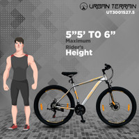 This Urban Terrain mountain bike (cycle) is here to encourage and motivate you to live an adventurous life with its innovative features. It is designed using tempered steel and is powered by Shimano Gears to give you better performance and durability. With a wheel size of 69.85 cm (27.5) and the gear shift feature, you can ride your bike in various conditions with ease. The front and rear wheels of the bike feature disk brakes that ensure safe cycling.
