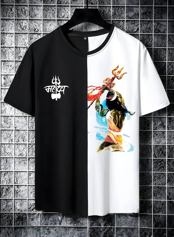 Men Graphic Print, Typography Round Neck Polyester Black, White T-Shirt