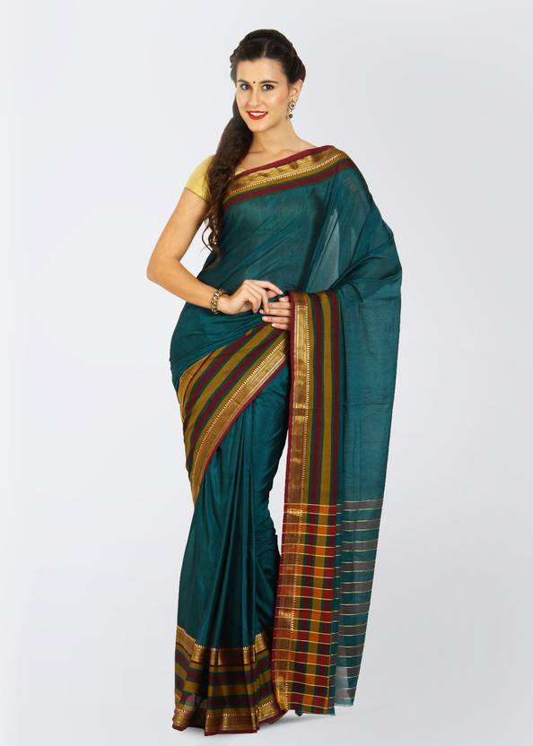 Solid/Plain Bollywood Cotton Blend Saree (Green)