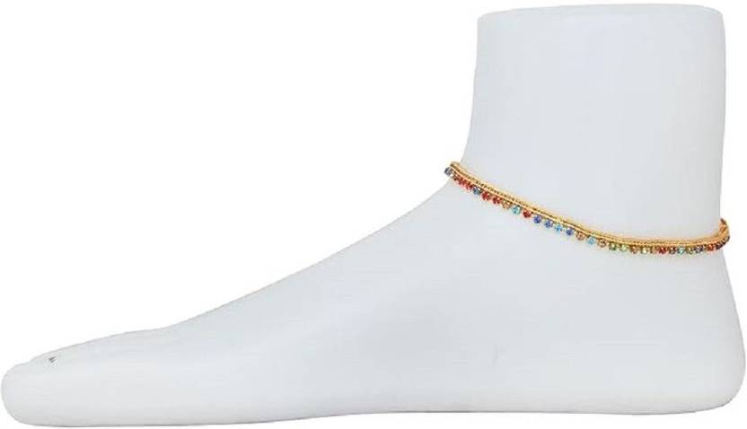 Latest Anklets lightweight Fancy stone Chain Design Payal: ANK-02 GOLDEN MULTI_A