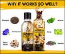 Clears dirt & bacteria: The jadibuti shampoo thoroughly clears bacteria reaching your hair roots without causing any dryness, irritation, or frizziness., Nourishes scalp: The jadibuti oil deeply nourishes the scalp to promote hair growth and reduce dryness. It is non-sticky and doesn’t cause excess oil in the scalp., Natural Ingredients: Infused with Brahmi, amla, reetha, shikakai, and much more, the ayurvedic combo contains jadibuti and all the natural elements beneficial for your hair., Helps in hair growth: Due to its natural ingredients, this ayurvedic jadibuti combo strengthens the hair roots and provides them enough nutrients and nourishment for growth.