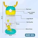 URBANHUDA Deer Horn Multi Design Cute Mix Cartoon Sipper school Bottle for Kids with Strap 600 ml Water Bottle (Set of 1, Multicolor)