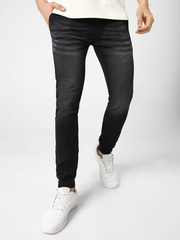 Stylish Whisker Washed Black Jogger Jeans - Elasticized Waistband with Drawstring & Elasticized Ankle Rib, Cotton Lycra Fabric with Stretch - To give you extra comfort and agility, Slim Fit; Mid-Rise, Regular Length, Jogger Style, Diagonal Front Pockets, Perfect for Casual, Office, Holiday & Party Wear, Wash Care - Mild Wash ; Wash dark colors separately; Disclaimer - There may be slight variation in shade and colour due to photographic effects and monitor settings