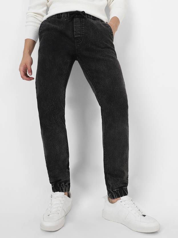 Stylish Towel Washed Black Jogger Jeans - Elasticized Waistband with Drawstring & Elasticized Ankle Rib, Cotton Lycra Fabric with Stretch - To give you extra comfort and agility, Slim Fit; Mid-Rise, Regular Length, Jogger Style, Diagonal Front Pockets, Perfect for Casual, Office, Holiday & Party Wear, Wash Care - Mild Wash ; Wash dark colors separately; Disclaimer - There may be slight variation in shade and colour due to photographic effects and monitor settings