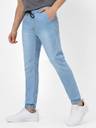 Cotton Lycra with Stretch, Regular Length, Stylish Washed Light Blue Jogger Jeans, Slim Fit, Mid-Rise