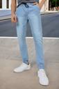 Slim Fit, Stylish Washed Light Blue Jogger Jeans - Elasticized Waistband with Drawstring, Mid-Rise