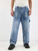 Material: Urbano Fashion Loose fit carpenter towel jeans Made from durable, high-quality 100% cotton non-stretch denim with a washed effect for enhanced texture and comfort, Fit Type: Loose fit silhouette offers extra room through the legs and hips, ensuring freedom of movement and a relaxed streetwear appeal for modern styling, Construction: Features a classic carpenter design with utility pockets, hammer loops, and a durable zip fly with button closure for a functional yet stylish look, Care Instructions: Machine wash cold with similar colors, do not bleach, tumble dry low, and iron at low temperature to maintain. Disclaimer: Slight shade variation is possible due to photography and monitor settings. the fabricโs integrity, Styling: A versatile and functional pieceโpair with casual tees, work shirts, or sneakers for a laid-back, utilitarian street style.