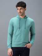 Make heads turn and stay stylishly warm in this latest trending design of Urbano Fashion men's green solid cotton hooded neck with drawstring closure sweatshirt, which brings the latest trend for the fashion conscious. The in-vogue solid sweatshirt with chest printed design; soft, warm & premium cotton fabric, closed front, kangaroo pockets, hooded neck, Regular Fit & Ribbed hem, full sleeve with ribbed cuff, make it a wardrobe must-have. Pair this fashionable and comfortable full sleeve sweatshirt with any Urbano Fashion jeans, trousers, shorts for the perfect casual, evening, gym wear or party wear look, and never go out of style!
