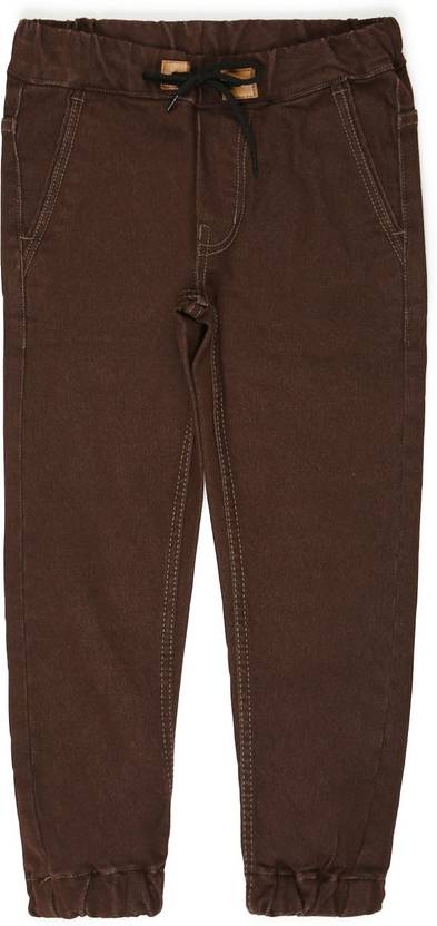 Stylish Washed Brown Jogger Jeans for Boys - Comfortable Elasticized Waistband with Drawstring and Elasticized Hem, Cotton Lycra with Stretch (98% Cotton 2% Elastane) - Offers extra comfort and flexibility, Slim Fit, Mid-Rise, Regular Length, Diagonal Front Pockets, Perfect for Casual, Party & Evening Wear, Wash Care - Mild Wash ; Wash dark colors separately, Disclaimer - There may be slight variation in shade and colour due to photographic effects and monitor settings