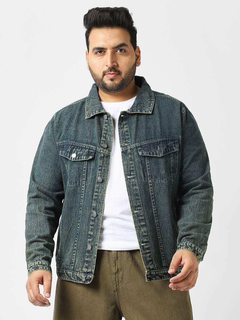 Stylish Blue Plus Size Denim Jacket, Trendy Heavy Washed Pattern, Regular Fit, Buttoned Full-Front Opening, Slim Collar, 2 Dummy Chest Pockets with Flap and 2 Front Welt Pockets, Regular Length, Buttoned Cuff, Perfect for Winter Season, Cool Casual, Evening & Holiday Wear, Wash Care - Mild Wash ; Wash dark colors separately, Disclaimer - There may be slight variation in shade and colour due to photographic effects and monitor settings
