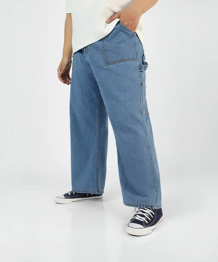 Pocket type: 2 Patch pockets in the front ; 2 Utility pockets on back with loop on side; 2 back pockets, Fabric: Non-Stretchable 100% Cotton, Stretchability : Non-Stretch, Pattern: Solid, Basic Wash, Fit: Relaxed Fit / Loose Baggy Fit Plus Size Jeans, Colour: Light Blue, Length: Regular, Rise: Mid rise, Closure: Button closure with zipper fly, Care: Machine Washable, Occasion : Casual wear; Street wear; Club wear; Work from home wear, Disclaimer : There may be slight variation in shade and colour due to photographic effects and monitor settings