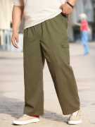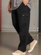 1 Plus Size Solid Loose Fit Cargo Pullon Trouser