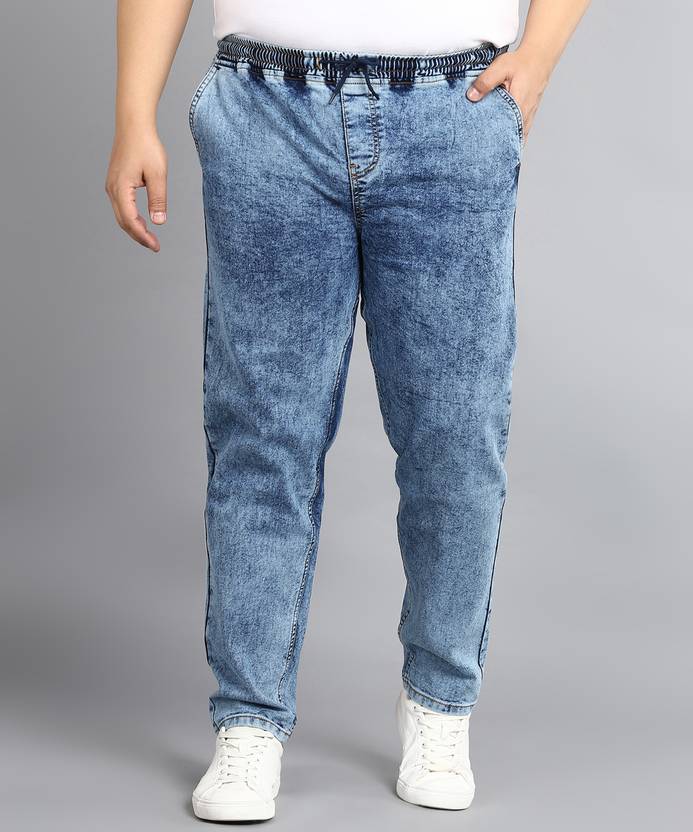 Stylish & Cult Plus Size Whisker with Towel Washed Jogger Blue Jeans - Elasticized Waistband with Drawstring, Cotton Lycra Fabric with Stretch - To give you extra comfort and agility, Regular Fit; Mid-Rise, Regular Length, Jogger Style, 2 Diagonal Front Pockets & 2 Back Pockets, Perfect for Casual, Office, Holiday & Party Wear, Wash Care - Mild Wash ; Wash dark colors separately; Disclaimer - There may be slight variation in shade and colour due to photographic effects and monitor settings