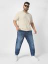 Bring out your stylish best this season in this classy and trendy men's stretchable blue washed jogger jeans from Urbano Plus. Made with superior quality cotton fabric with stretch technology, heavy washed pattern, the regular fit mid-rise jogger denim jeans with elasticised waistband are sure to keep you looking stylish and feeling comfortable through the day. Pair these must-have fashionable jogger jeans with any light color Urbano Plus shirt or t-shirt for the perfect casual, party, holiday or office wear look. So go ahead, stand apart from the crowd and create your own trends. And follow no one else but yourself. Urbano Plus - your go-to stylish and comfortable Plus size brand from Urbano Fashion.