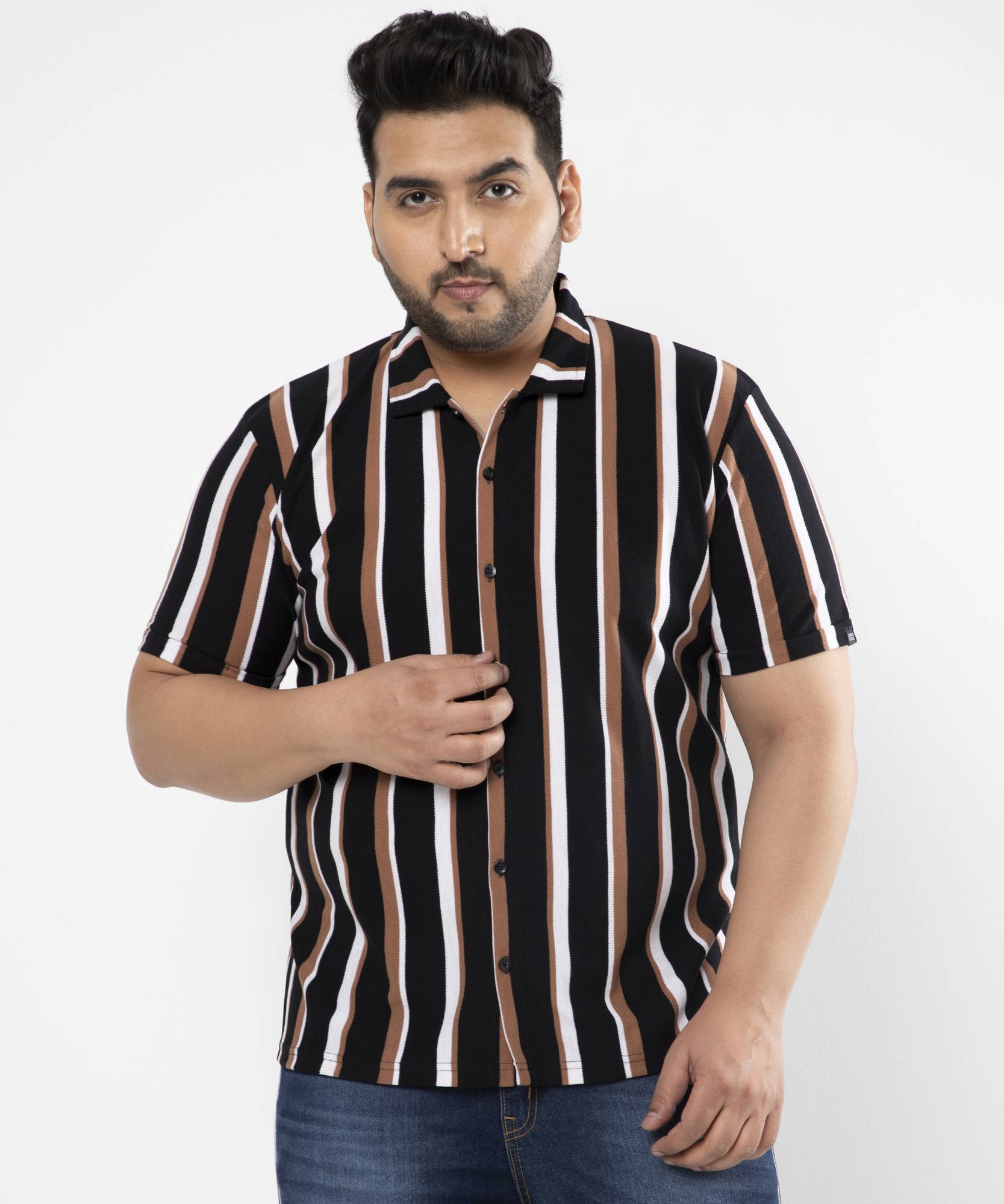 Be a style icon in this Urbano Plus Men's Brown Regular Fit Plus Size Solid Stretch Jeans, which brings the latest trend for the fashion conscious. High on style and quality, these uber cool & classy washed stretchable jeans are as versatile as they are comfortable - a must have in your wardrobe for all seasons. Perfect for casual, office & party wear, pair these in-vogue mid-rise jeans with any light color Urbano Plus shirt or t-shirt, and never go out of style! #GoStylishOrGoHome! Urbano Plus - your go-to stylish and comfortable Plus size brand from Urbano Fashion.