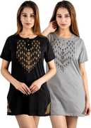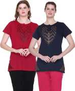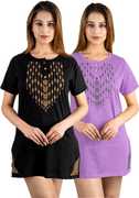 URBE-URBAN EVOLUTION Printed Women Round Neck Purple, Black T-Shirt