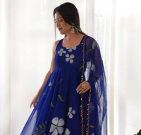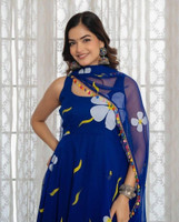 Thanks to the thoughtfully coordinated look, this women's gown presents a unified look through its beautifully crafted dupatta. This set showcases a matching pattern that flows seamlessly across both the gown and the dupatta, creating a graceful visual continuity. In addition, the dupatta is finished with delicate tassels along the borders, adding a charming detail that brings gentle movement with every step.