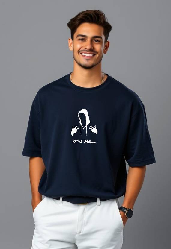 UrGear Printed Men Round Neck Dark Blue T-Shirt