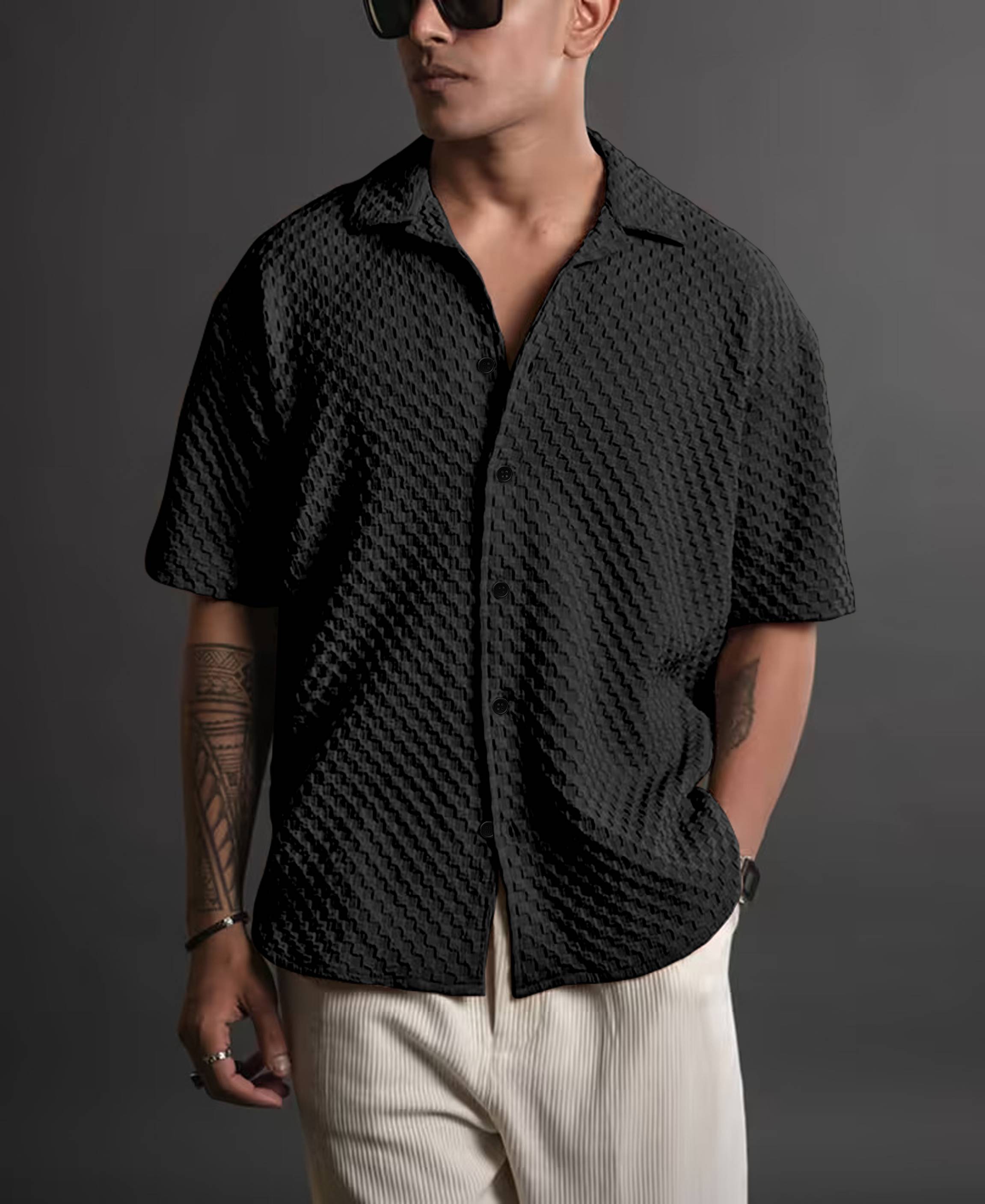 Black is a wardrobe staple, and this oversized T-shirt elevates it with a modern twist. Its versatility makes it a go-to piece for creating countless outfits, from casual streetwear looks to athleisure ensembles.