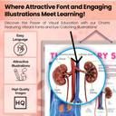 Featuring high-quality and visually captivating diagrams, this chart takes students on an anatomical journey through the kidneys, ureters, bladder, and urethra. Each organ is labelled with clear, easy-to-understand names, ensuring that children can easily grasp the intricacies of this essential bodily system.