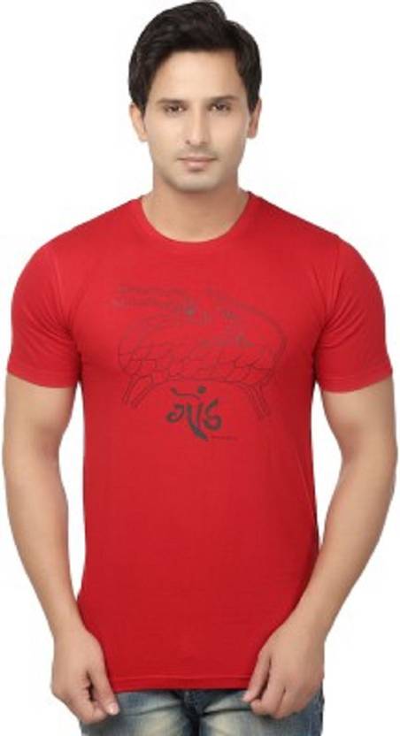 Gond Men Printed Round Neck Cotton Blend Red T-Shirt