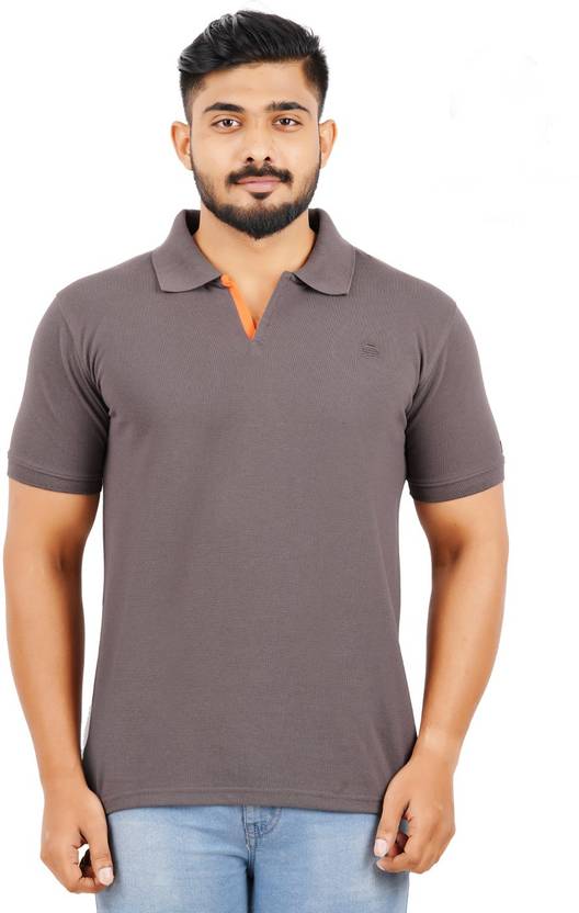 Men Solid Polo Neck Cotton Blend Grey T-Shirt