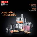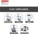 Available with 13 handy attachments, this food processor fulfils a plethora of daily food prep requirements. The attachments include a bowl, a multipurpose jar, a blender jar, a chutney jar, a centrifugal juicer, a citrus juicer, a chopper, a slicer, a grater, a shredder, a spatula, an atta kneading blade, and an egg whisker.