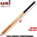 USI UNIVERSAL Bseball Bat, 785A Perfect Professional Wooden Base Bat 34 inch Length, Willow Baseball Bat For 15+ Yrs (750 g)