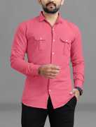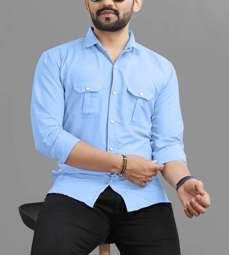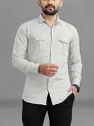 USONAΒ Men Regular Fit Solid Curved Collar Casual Shirt