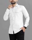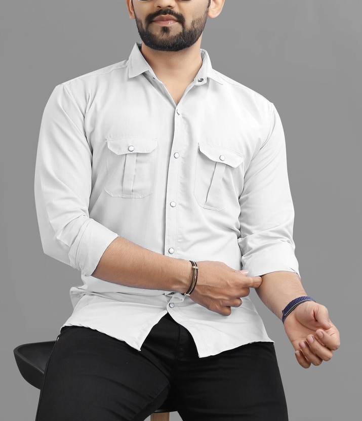 USONA Men Solid Casual White Shirt