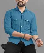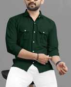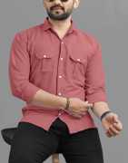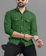 USONA Men Solid Casual Yellow Shirt