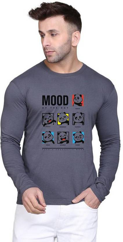 Men Printed Round Neck Cotton Blend Grey T-Shirt