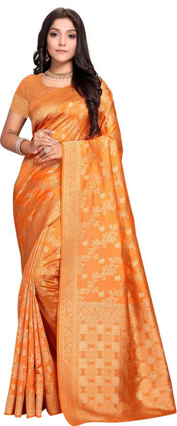 Embellished Kanjivaram Cotton Silk Saree (Orange)