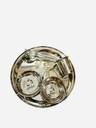Diameter: Plate-25.4 cm inch, Dessert plate-10cm inch, Curry bowl-9.3cm inch, Glass-6.5cm inch, Spoon-15.5cm inch, Fork-15.5cm inch