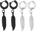 Airtick (2 Pair) CMB7845 Multi Press Screw Pierced Barbell Hoop Bali With Hanging Leaf Metal Clip-on Earring