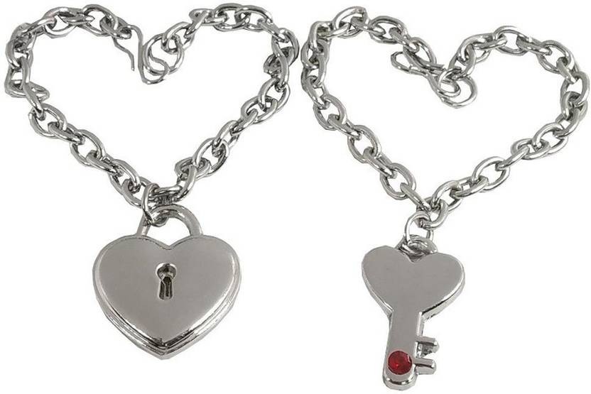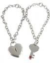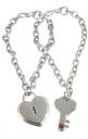 Valentine's Day Trending Special Metal Stainless Steel Heart Design Lock And Key Cubic Zirconia Memorial Keepsake Padlock Charm Cord Diamond Nug Key Lock Romantic Love Couple Friendship 2 In 1 Duo Wrist Band Cuff Chain Bracelets